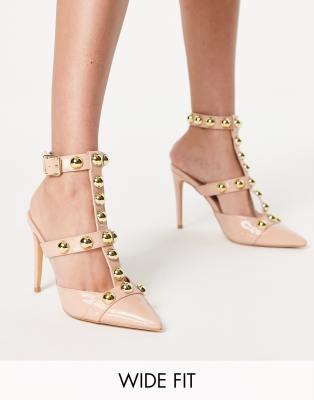 London Rebel wide fit studded strappy