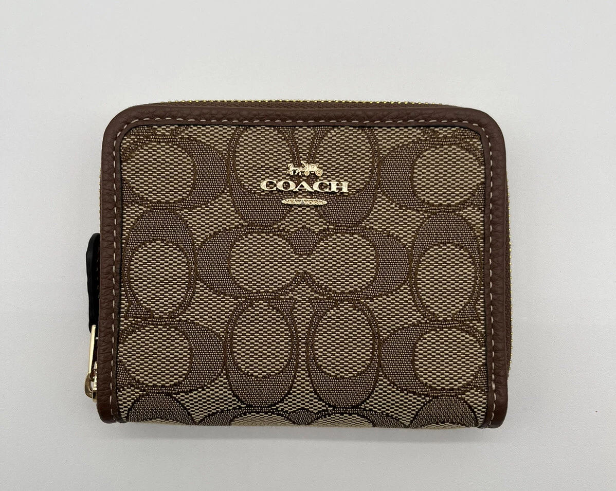 Coach Medium Corner Zip Wallet In Signature Canvas IM/Khaki Saddle 2 | eBay