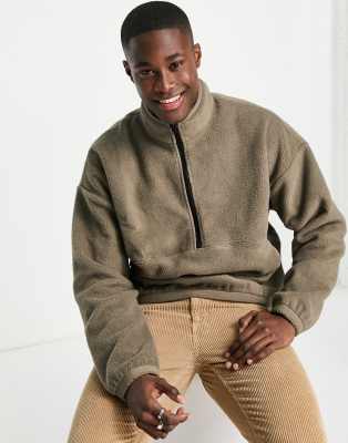 Abercrombie \u0026 Fitch Oversized Polar Fleece Half Zip Sweatshirt in Brown