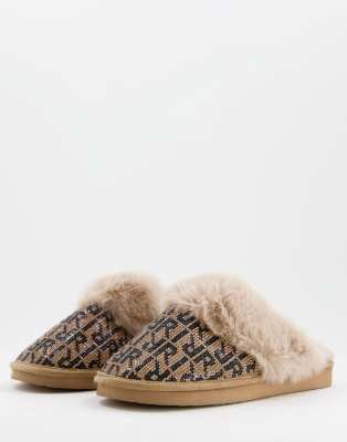 River Island monogram fluffy mule
